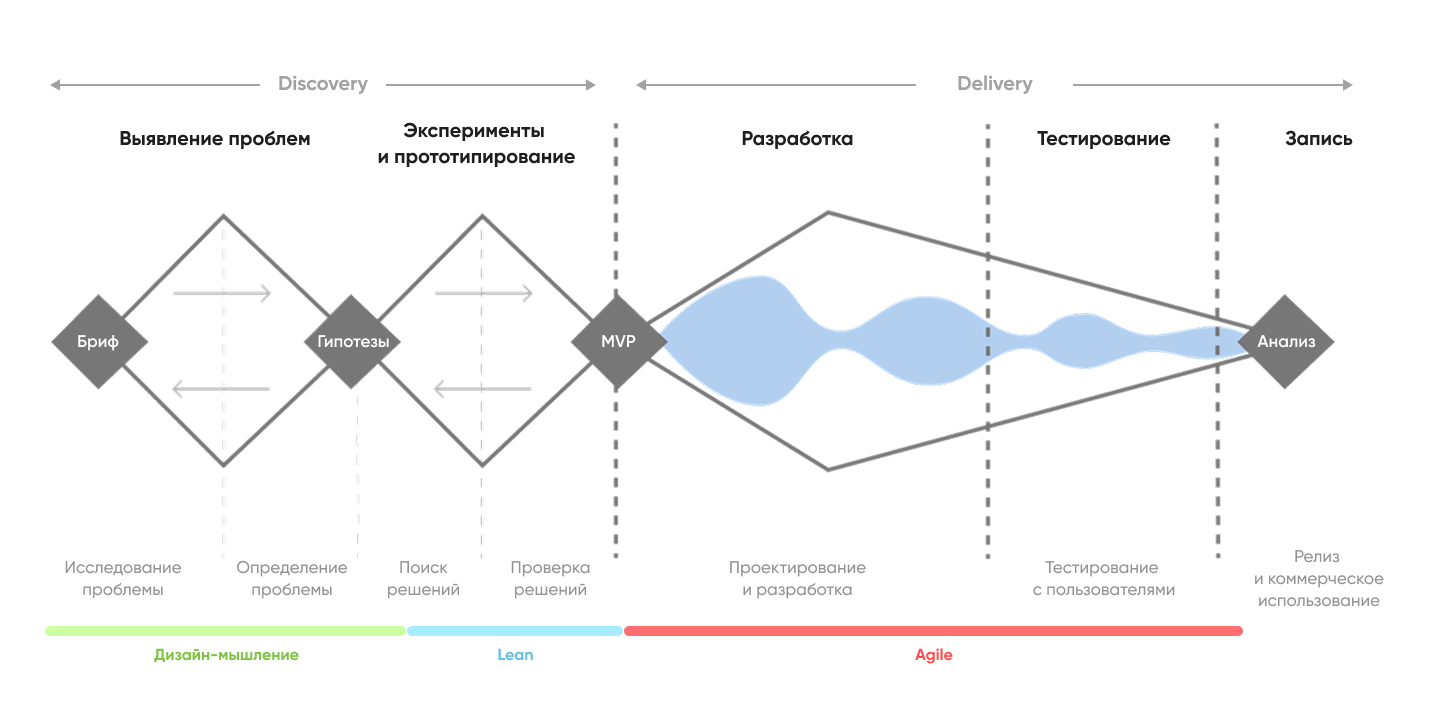 Такой подход позволяет экономить ресурсы на разработку — идеи тестируется на дешевых прототипах и проблемы выявляются заранее, а выпускаются только те продукты, которые будут полезны и востребованы у потребителей.