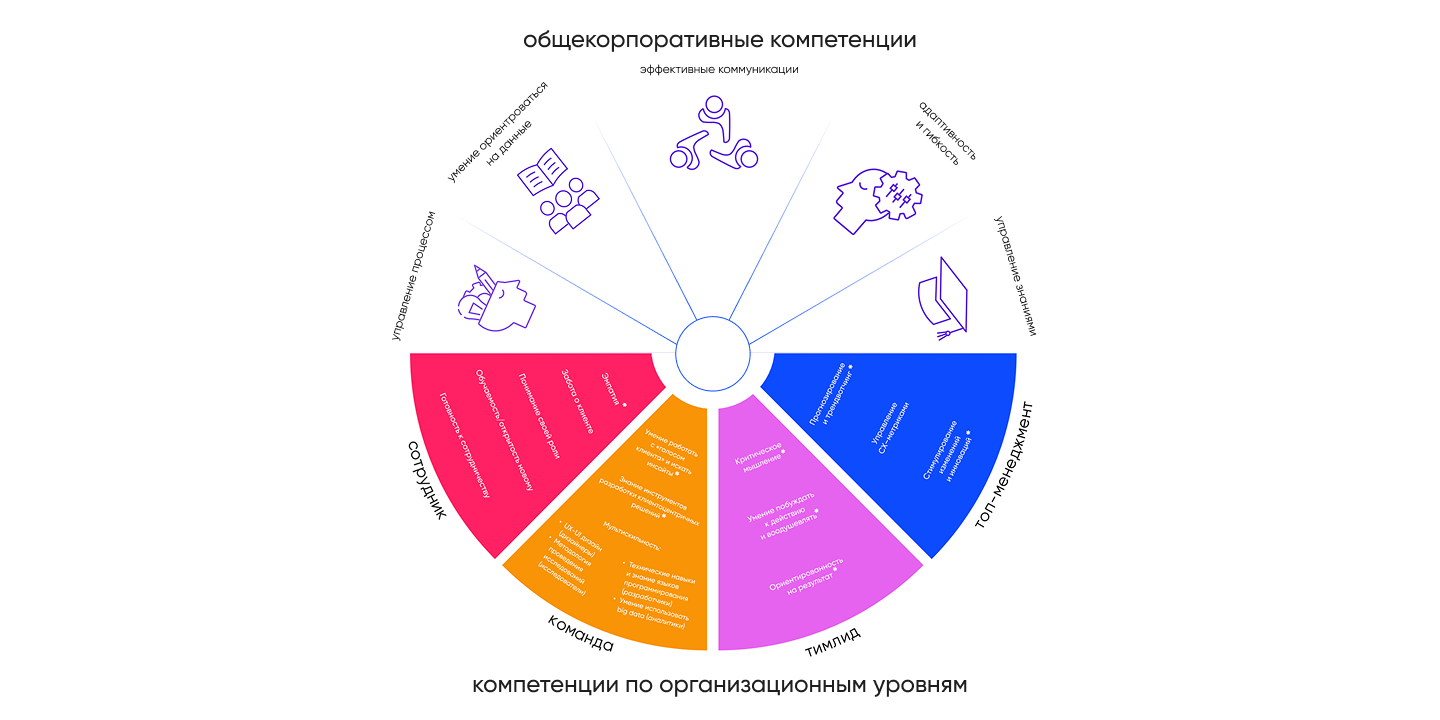 Чтобы клиентоцентричная трансформация в банке не закончилась после завершения работы команды Wonderfull, мы показали, какие компетенции нужны для каждой должности, обучили сотрудников самостоятельно запускать продукты с ориентацией на клиента и подготовили гайд по клиентоцентричности.