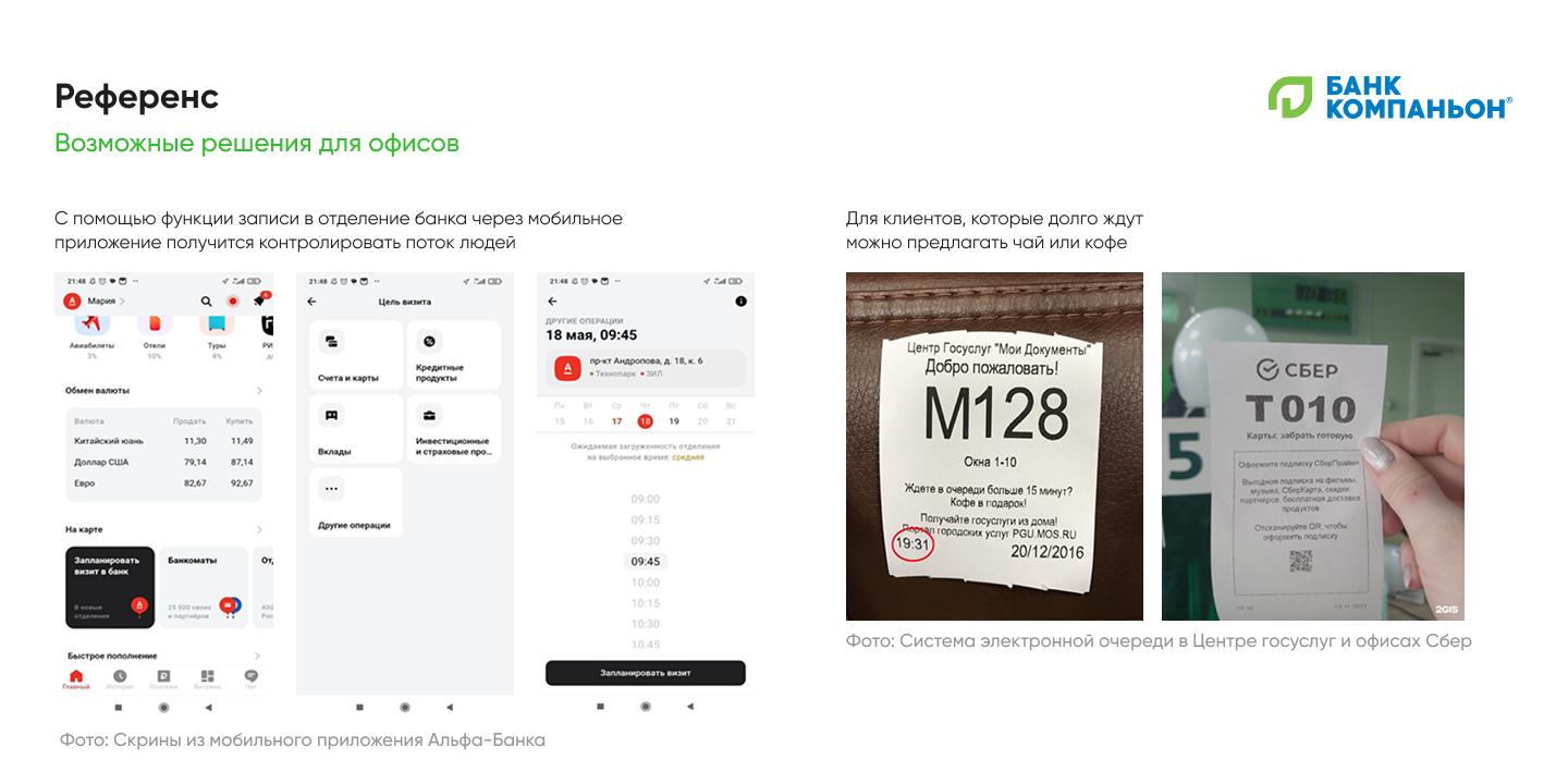 Например, мы выявили самые частые причины, почему клиенты выбирают офис. Это помогло заказчику понять, как сделать те же сервисы в мобильном приложении понятнее.
