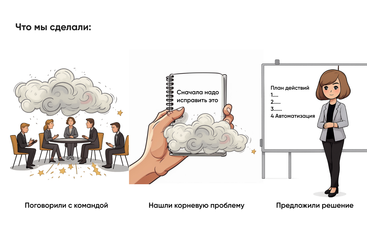 Выявили корневую проблему. Автоматизация на старте только закрепила бы хаос — нужны были структурные изменения.